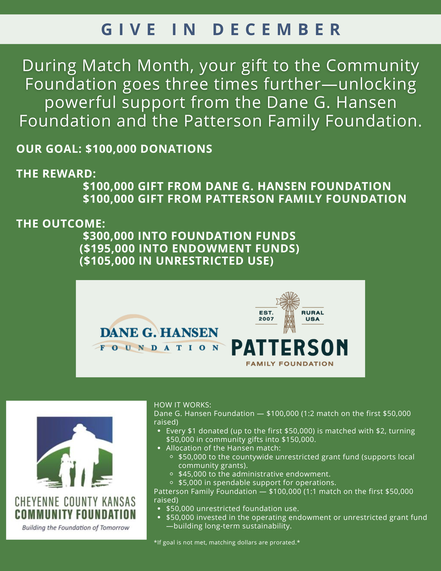 November is Match Month for Gove County Community Foundation, Norton County Community Foundation, Russell County Area Community Foundation, and Sheridan County Community Foundation!