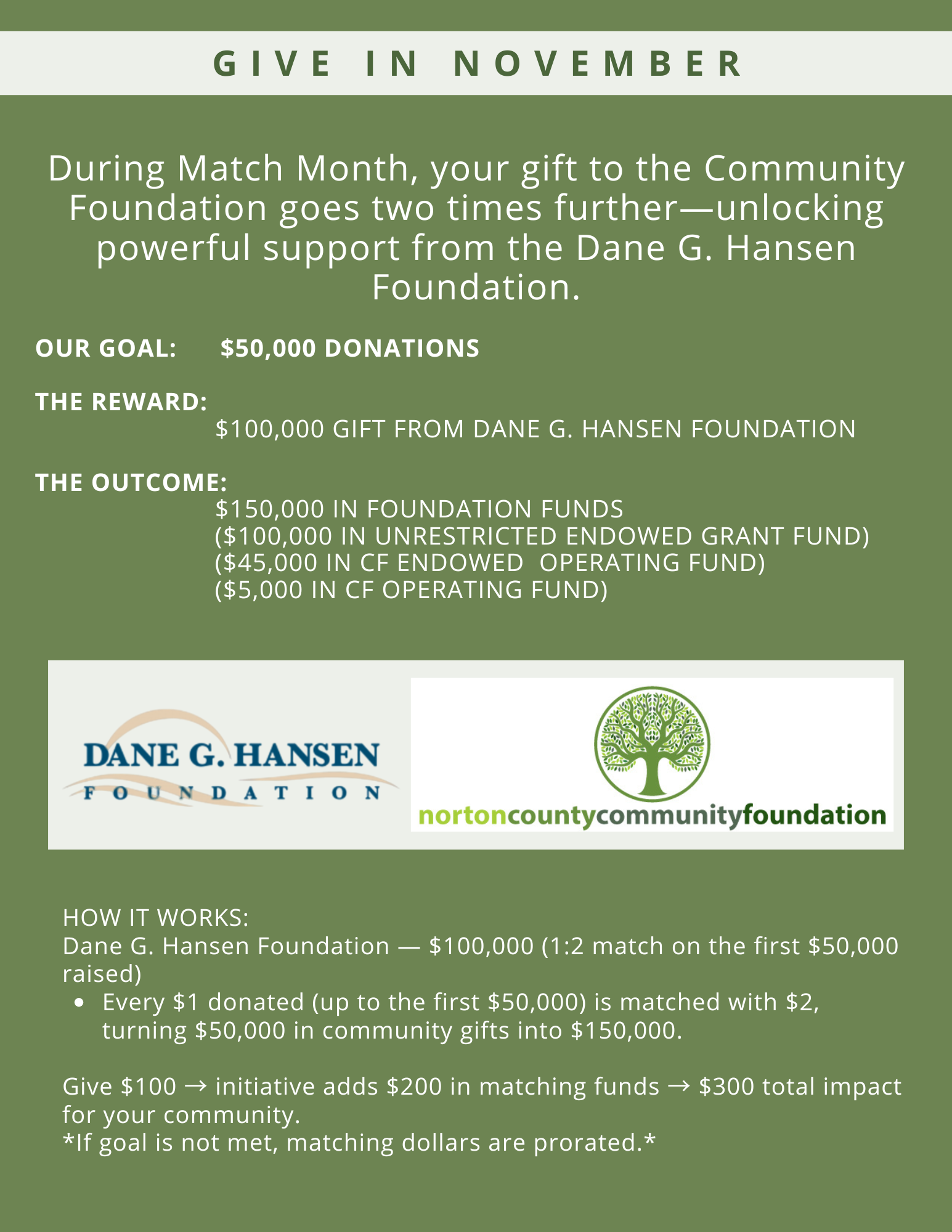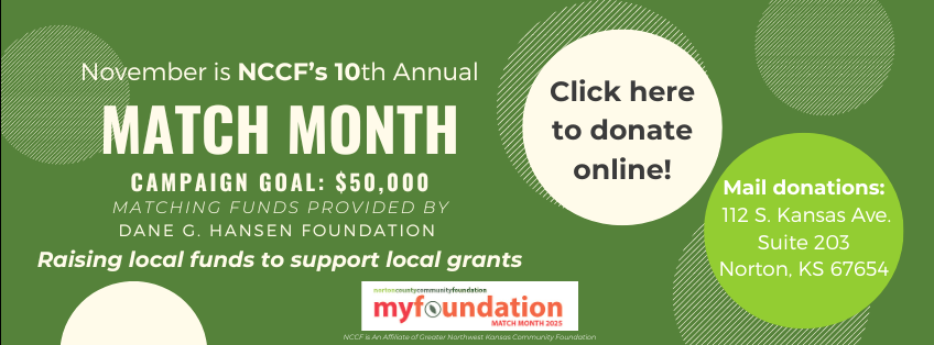 November is Match Month for Gove County Community Foundation, Norton County Community Foundation, Russell County Area Community Foundation, and Sheridan County Community Foundation!